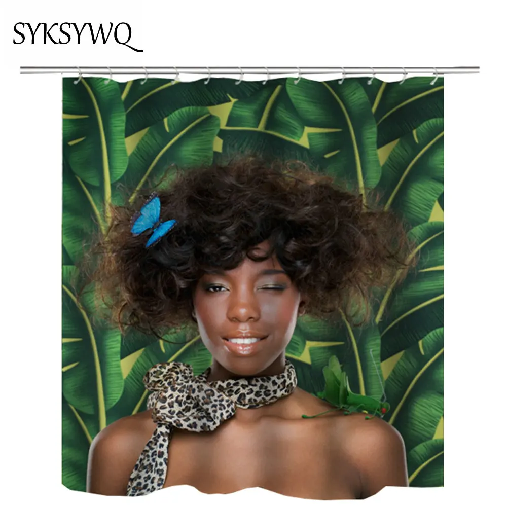 Afro Girl African Shower Curtain Fabric Waterproof Hot